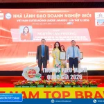 PGS.TS. Nguyễn Lan Phương – Phó hiệu trưởng Trường ĐH Nguyễn Tất Thành, nhận chứng nhận và biểu trưng TOP 10 doanh nghiệp xuất sắc Châu Á – Thái Bình Dương 2025